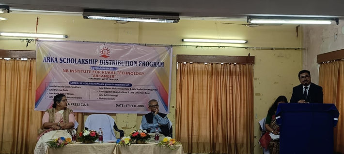 Agartala, February 6, 2025 — The NB Institute for Rural Technology (NBIRT) Arkaneer, through its academic wing, successfully hosted the Arka Scholarship Distribution Programme 2025 at Shishu Bihar Higher Secondary School, Agartala. Since its inception in 2004, the initiative has stood as a beacon of academic excellence, recognizing and nurturing bright young minds across Tripura.