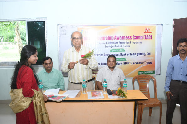 Sekerkote, Tripura – June 4, 2025 – An Entrepreneurship Awareness Camp (EAC) aimed at fostering entrepreneurial skills among local youth and women was successfully held at the MEPP Office Complex in Madhyermura, Sekerkote, Sepahijala District, Tripura. The event, sponsored by the Small Industries Development Bank of India (SIDBI) and implemented by NB Institute for Rural Technology (NBIRT), saw an impressive participation of 54 individuals, with 49 females and 5 males, highlighting the strong engagement of women in entrepreneurship.